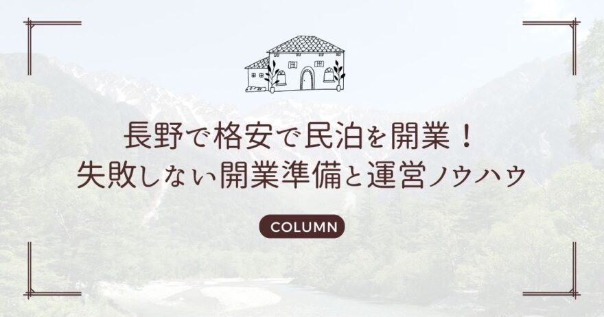 本記事では、長野県で「安く」民泊を開業し、安定した運営を目指すための全体像をご紹介します。格安での開業を目指すには、以下のステップが重要になります。