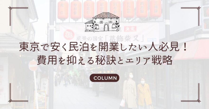 この記事では、東京で「安く」民泊を開業することに焦点を当て、以下の点について掘り下げていきます。