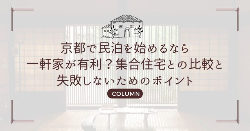 魅力的な観光都市として世界中から注目される京都で、民泊開業を検討されている方は少なくないでしょう。物件選びの際、「マンションなどの集合住宅と一軒家、どちらが良いのだろう?」と悩むこともあるかもしれません。