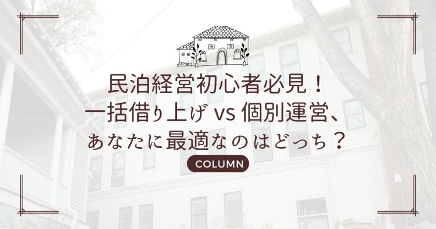 民泊経営初心者必見!一括借り上げ vs 個別運営、あなたに最適なのはどっち?