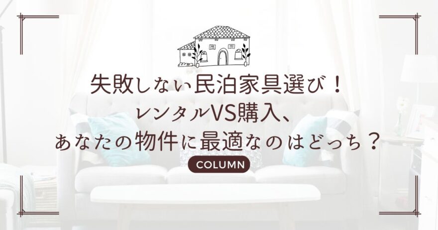民泊運営において、家具の初期投資は大きな検討事項です。予算が限られている場合や、初期費用を抑えたい場合は、レンタルが有力な選択肢となります。