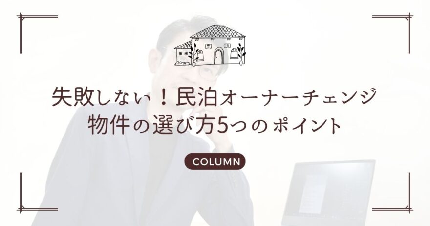 この特集記事では、オーナーチェンジ物件で民泊投資を成功させるためのポイントを、物件選びから注意点まで詳しく解説していきます。